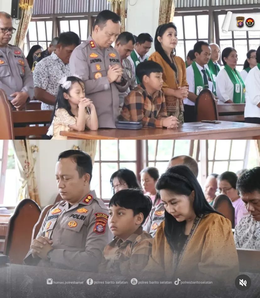 Kapolres Barito Selatan (Barsel), Polda Kalteng AKBP Jecson R. Hutapea, S.I.K., M.H. beserta keluarga melaksanakan kegiatan ibadah minggu sekaligus silaturahmi bersama pengurus Gereja Malawen Raya, Desa Sababilah pada Minggu (21/9/2025) pagi.