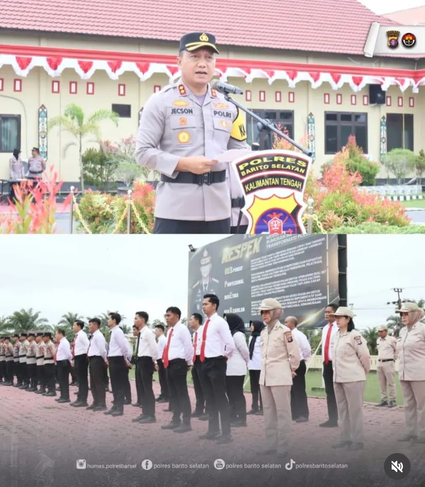 Upacara dipimpin langsung oleh Kapolres Barsel AKBP Jecson R. Hutapea, S.I.K., M.H. dengan diikuti oleh para pejabat utama dan personel perwira, bintara serta ASN.